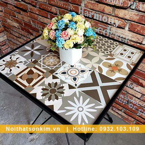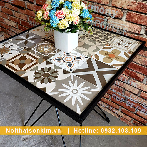 Xem 1 số hình ảnh chi tiết mẫu bàn cafe nhỏ chân sắt BC46 chụp bằng điện thoại chân thực nhất: