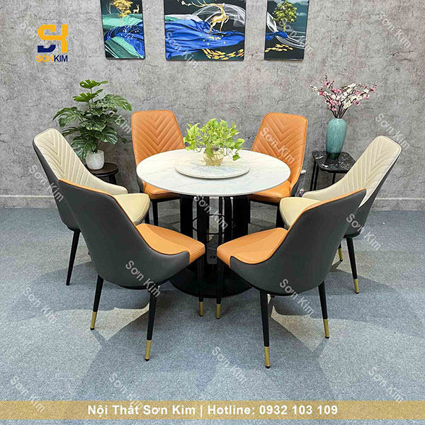 Bộ bàn ăn tròn xoay kết hợp với ghế Lix BGD51 hiện đại